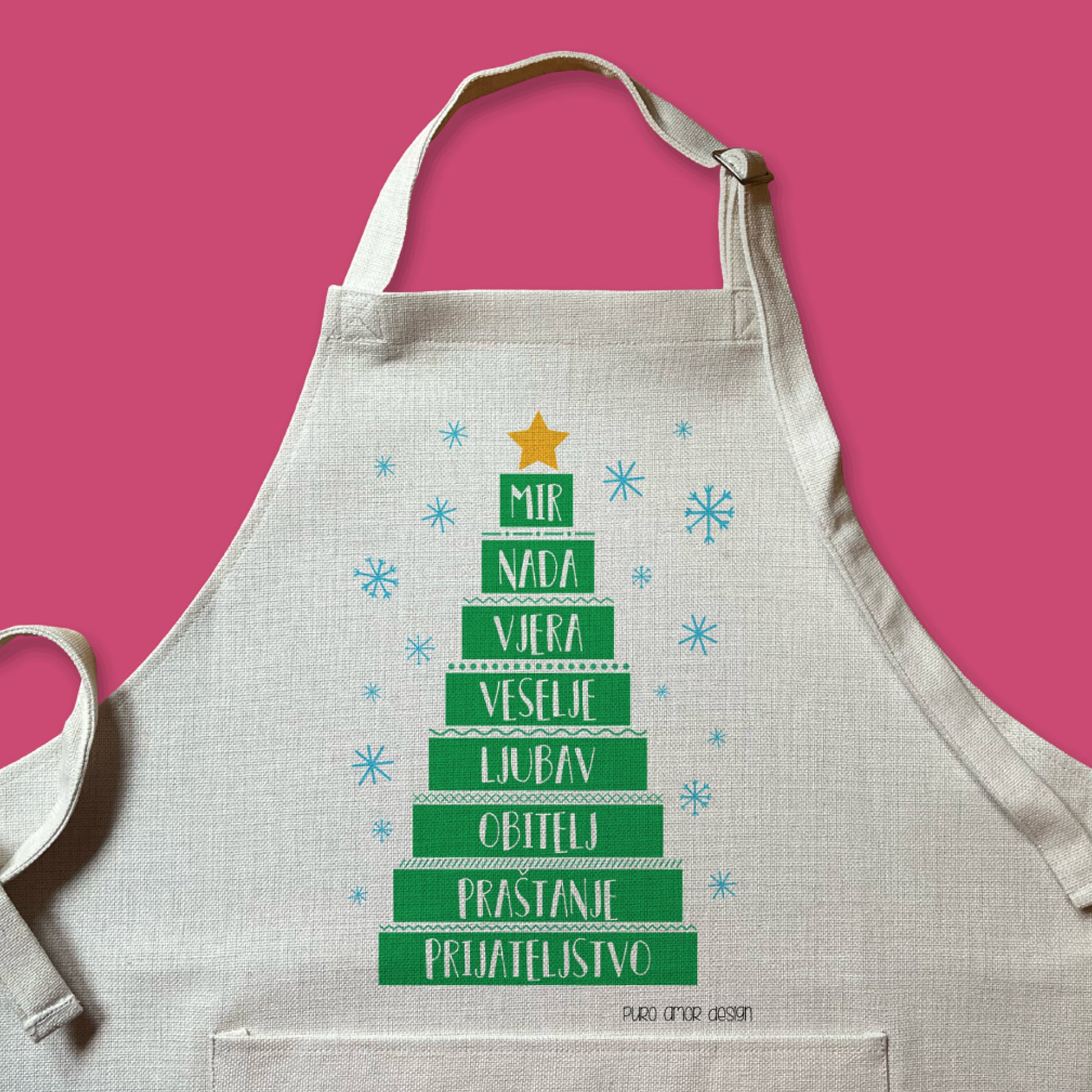 Ovaj se dizajn može personalizirati. Ovdje možeš napisati kratki natpis (do 30 znakova) koji ćemo besplatno tiskati na džep od pregače. Ako želiš da džep ima isti natpis kao na slici, molimo te da nam to napomeneš, ako ne napišeš ništa onda ostane prazan. Ako naručuješ više istih pregača, jedan je red po pregači, npr: